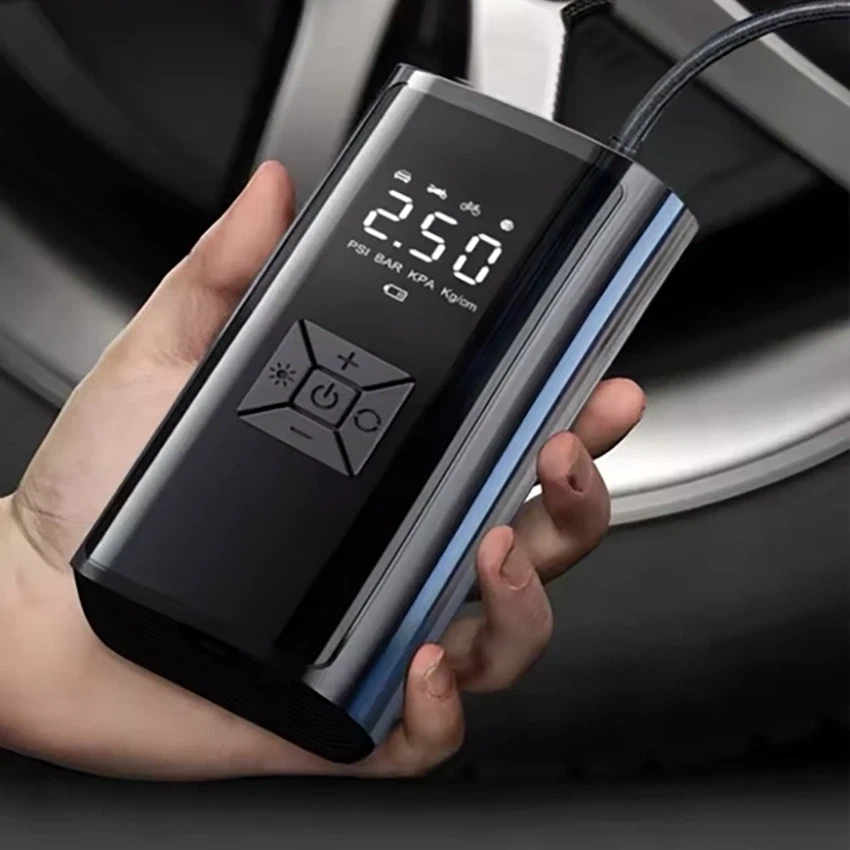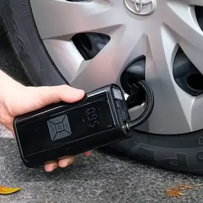 This compact digital air pump delivers fast, accurate inflation for your car, motorcycle, bike, or sports gear — all from the palm of your hand.