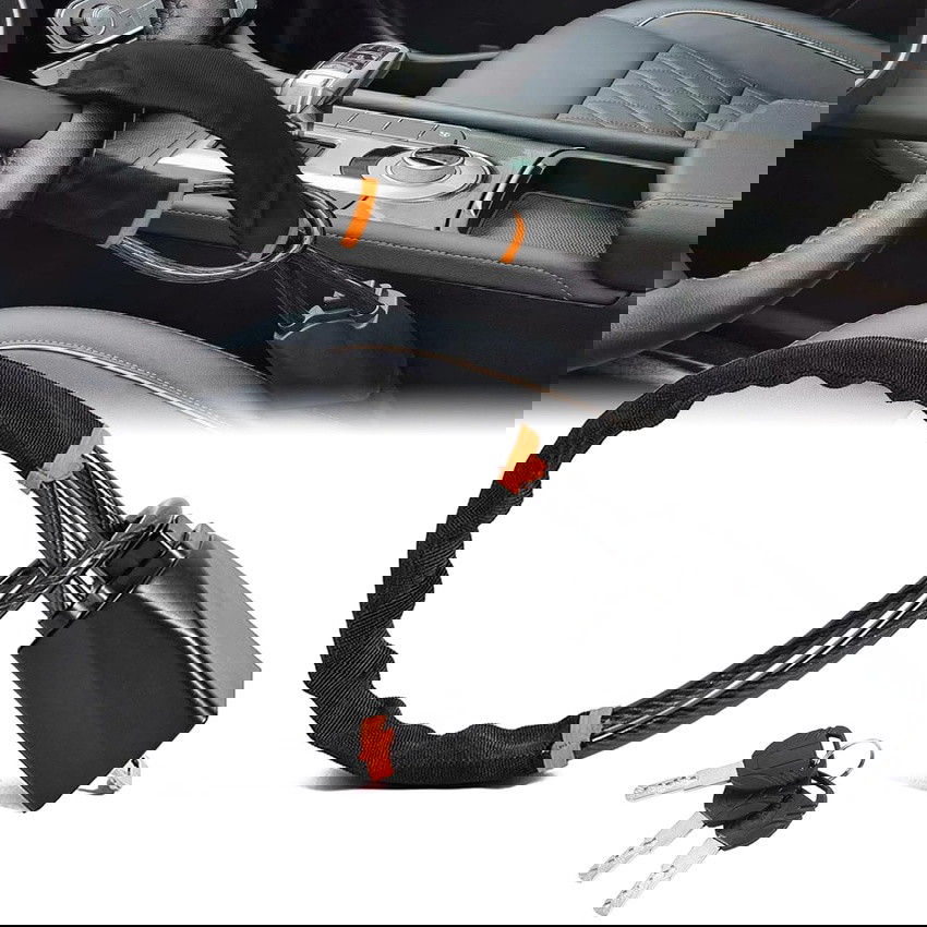 This heavy-duty steering wheel lock creates a powerful visual deterrent while physically preventing your steering wheel from turning.